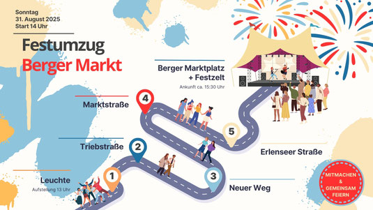 Der Festumzug zum Berger Markt findet in diesem Jahr am Sonntag, den 31. August 2025 statt – und ab sofort nehmen wir Anmeldungen entgegen!